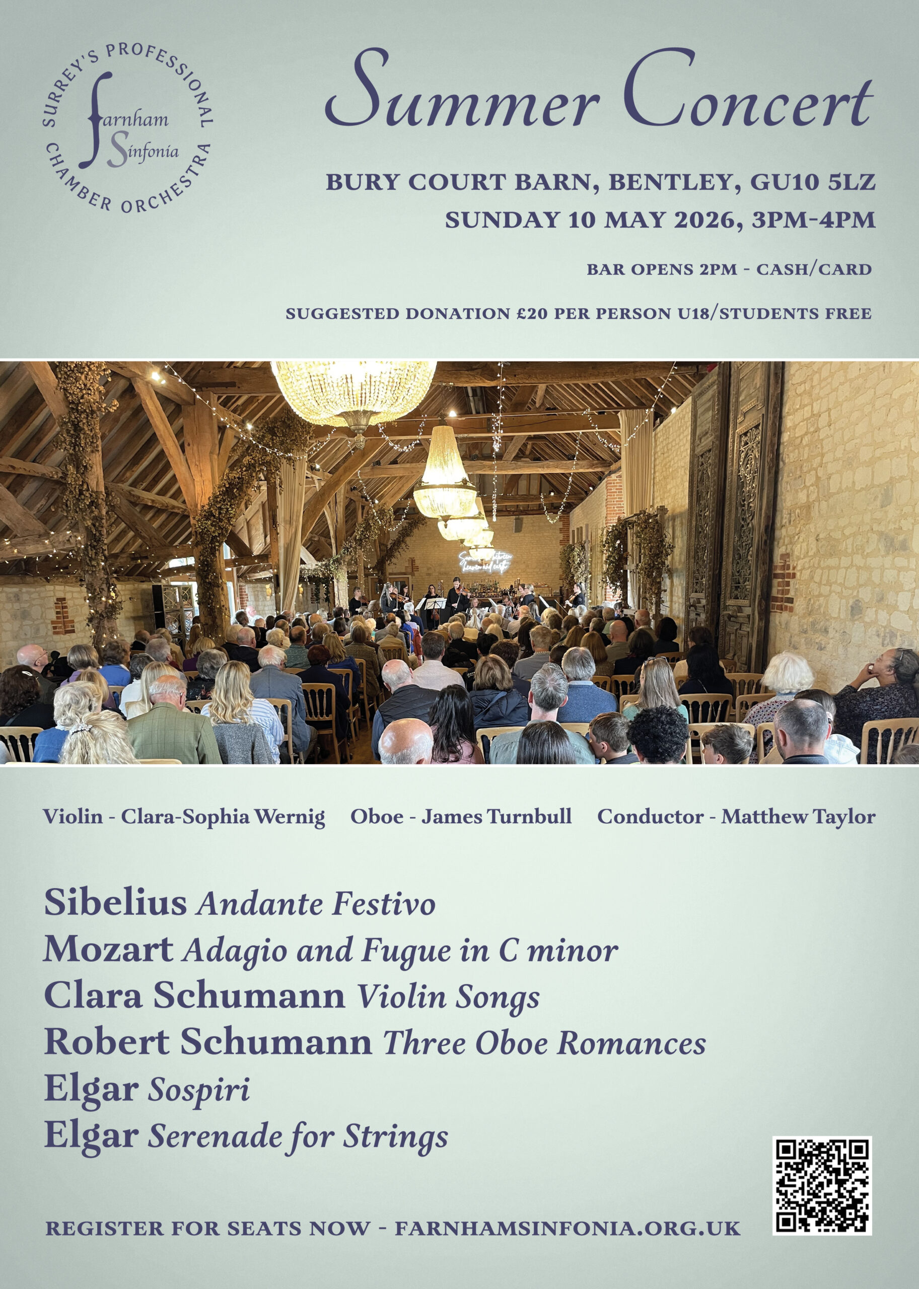 Please click HERE to sign a Gift Aid Form increasing the value of your gift by 25%, if you have not already done so. The forms are valid for ALL Farnham and Godalming concerts, including the Sinfonia, and need to be completed only once as they remain valid until you tell us to stop using them.